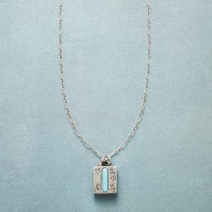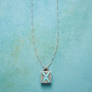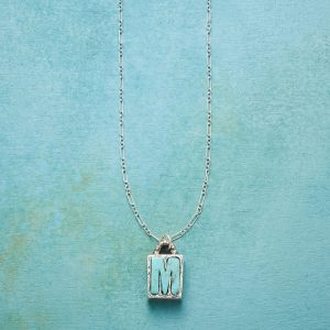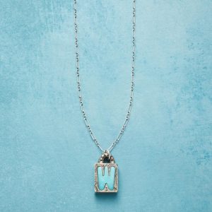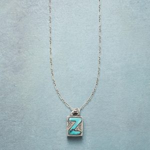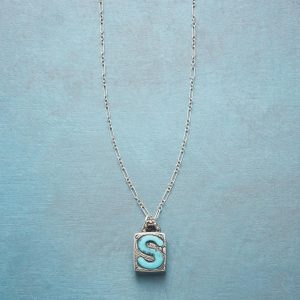 Jes MaHarry adds her personal touch. setting a hand-cut turquoise initial into a rustic bezel etched with joy on the side. love life on reverse. Sterling silver chain; Spring ring clasp. Exclusive. Handmade in the USA. Specify letter. 18l; pendant approx. 7/8l.